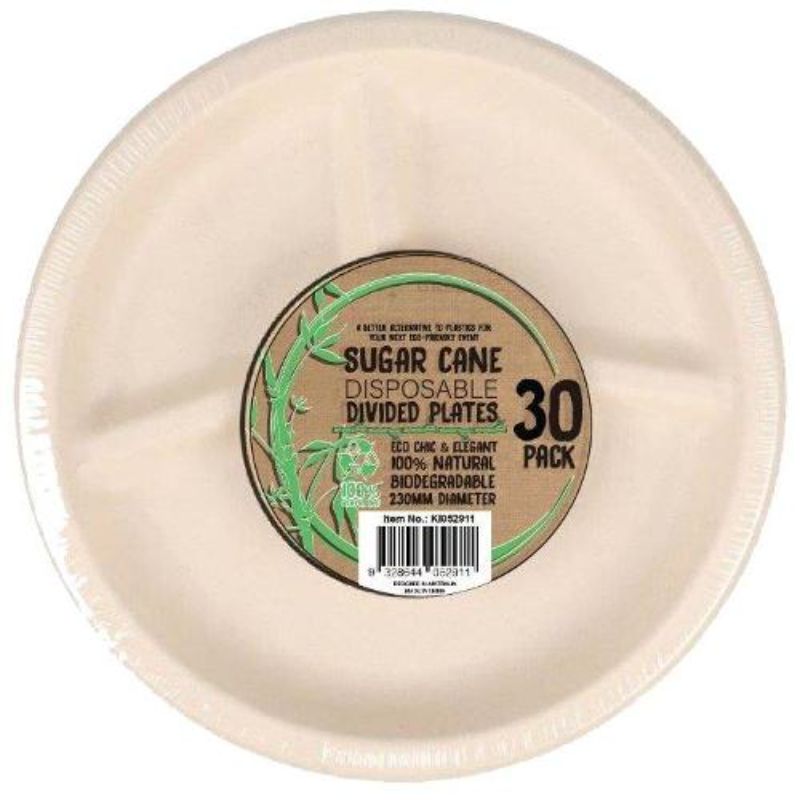 11 in stock30 Pack Eco Friendly Sugarcane Party Divided Plate - 23cm