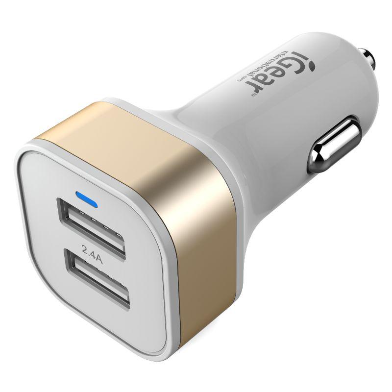 Only 2 left!iGear White/Gold 2.4A 2USB Car Charger