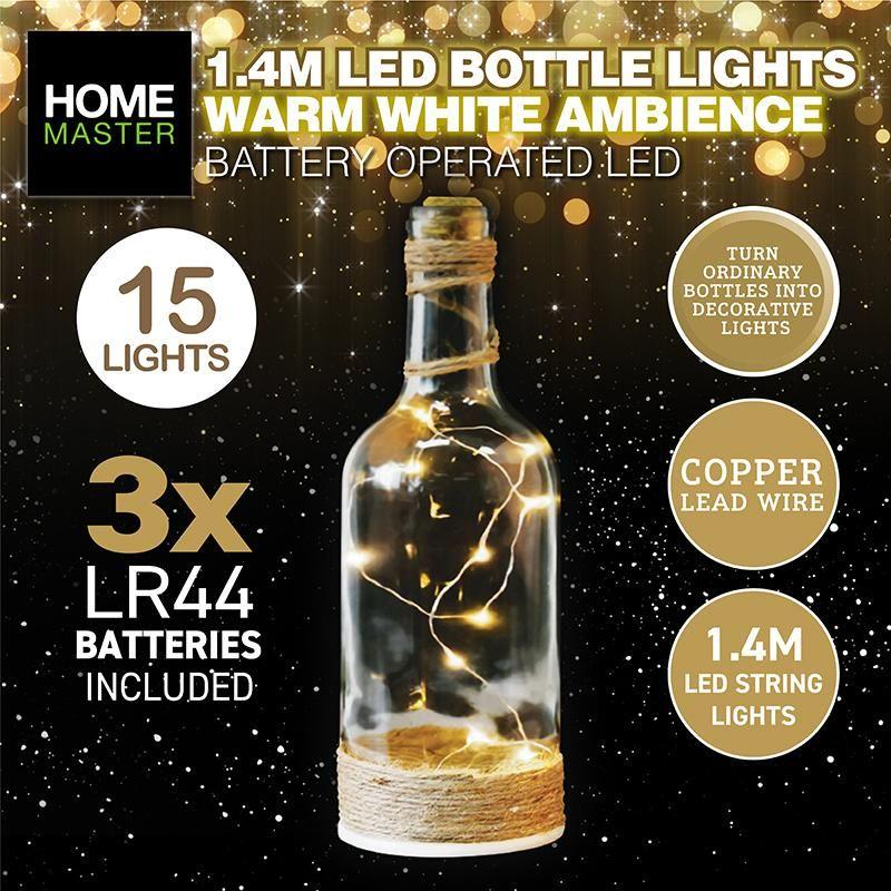 7 in stockWarm White 15 LED Battery Operated Copper Bottle Fairy Lights - 1.4m