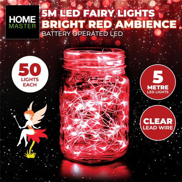 20 in stock50 Pack Red Battery Operated Fairy Lights - 5 Metre