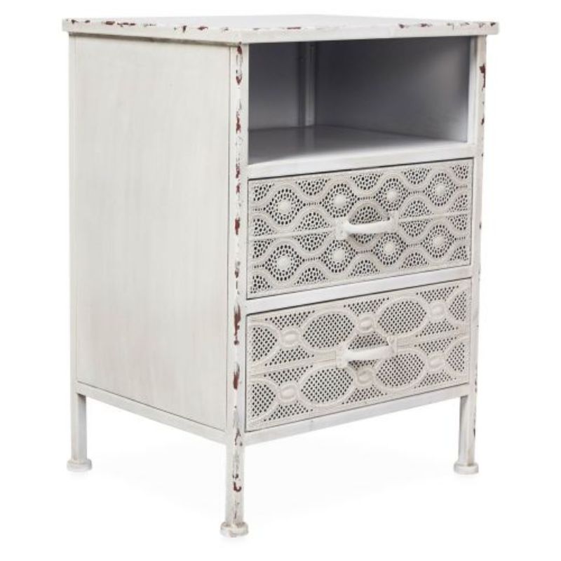 Only 1 left!Antique White Filigree 2 Drawer Metal Bedside Table - 42cm x 35.5cm x 58.5cm