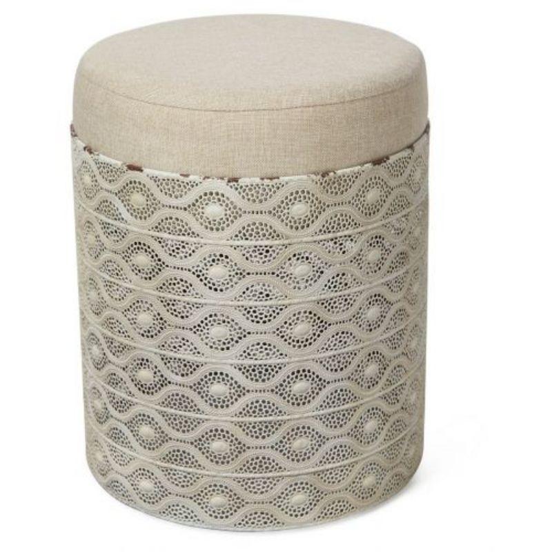 Only 1 left!Filigree Round Metal Stool with Cushion - Antique White/Beige - 40cm x 47.5cm