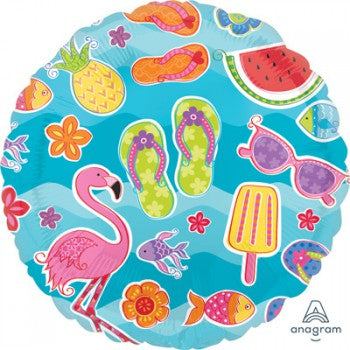 Only 4 left!Summer Fun Design Fruit Fish & Flamingo Foil Balloon - 45cm