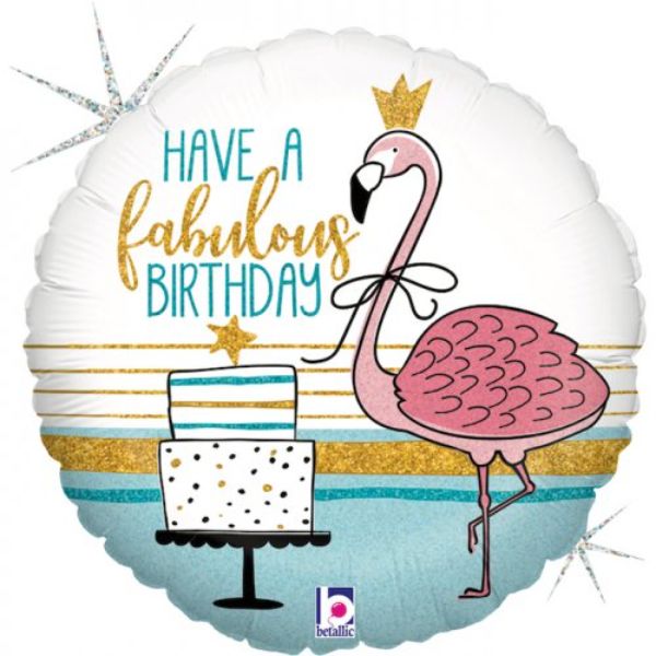 Only 1 left!Fabulous Flamingo Birthday Holographic Round Foil Balloon - 45cm