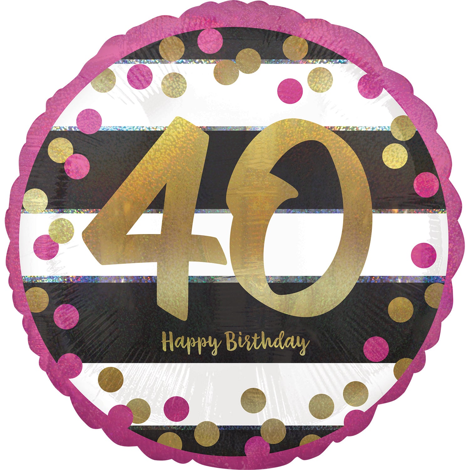Only 3 left!Pink & Gold 40th Birthday Holographic Standard Foil Balloon - 45cm