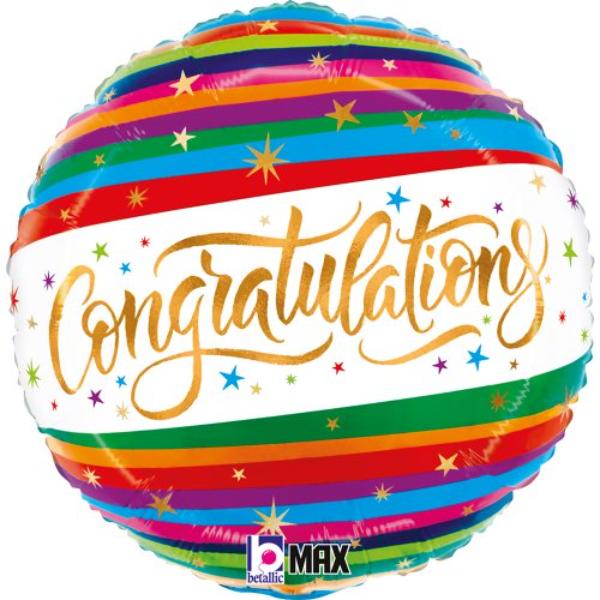 Only 2 left!Round Congratulations Fun Stripe Foil Balloon - 45cm