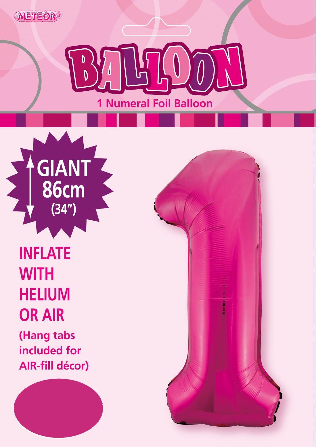 13 in stockHot Pink Numeral 1 Foil Balloon - 86cm