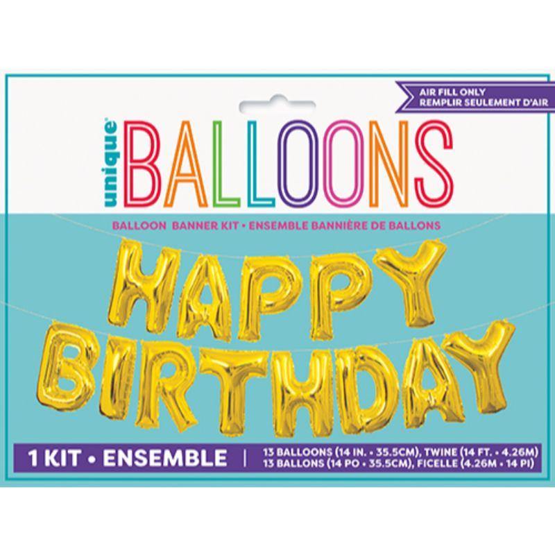 13 in stockGold Happy Birthday Foil Letter Balloon Kit - 35.5cm