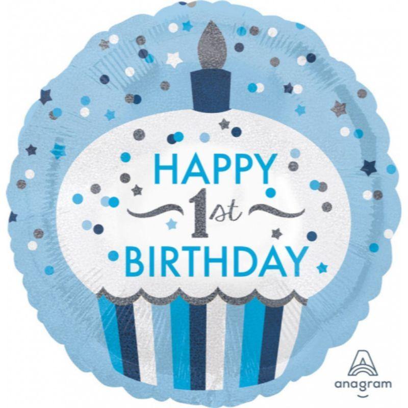 Only 5 left!1st Birthday Cupcake Boy Foil Balloon - 45cm