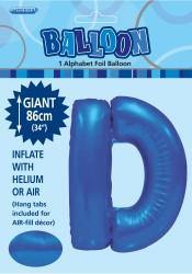 Only 1 left!Royal Blue Letter D Foil Balloon - 86cm