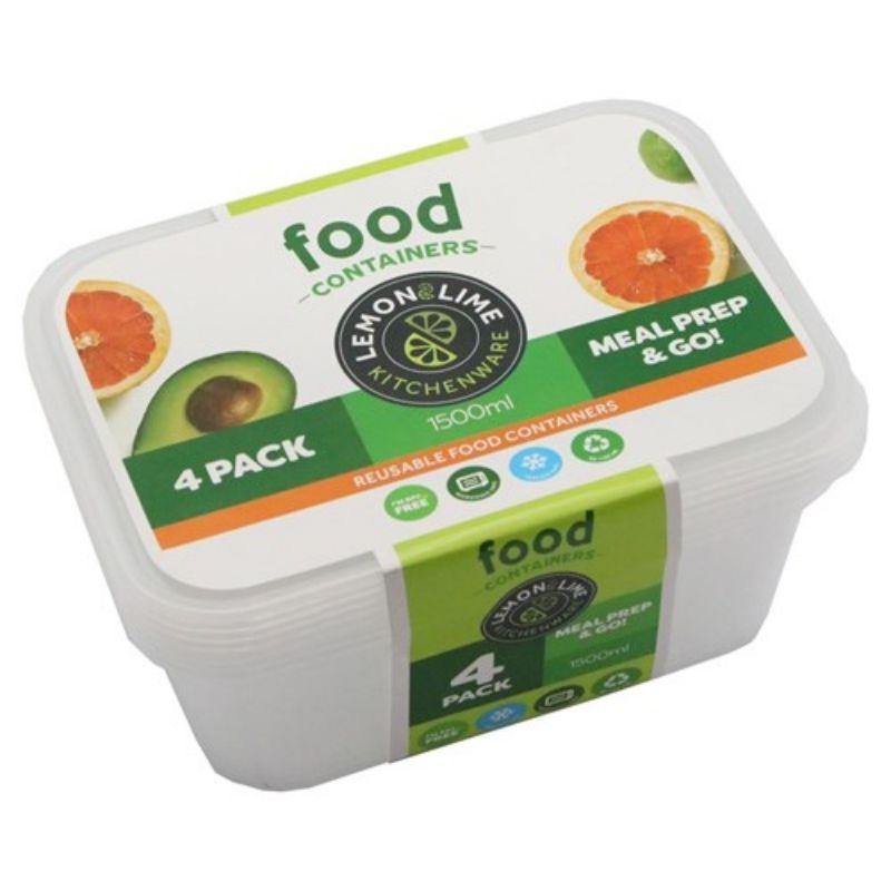 Only 2 left!4 Pack Reusable Food Containers - 1.5L
