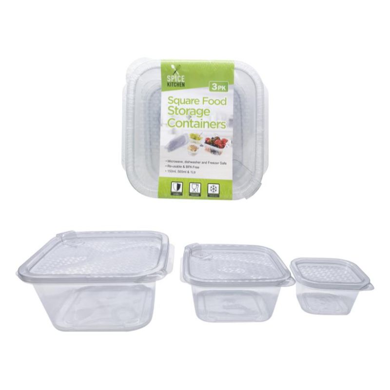 11 in stock3 Pack Square Reusable Plastic Food Storage Containers