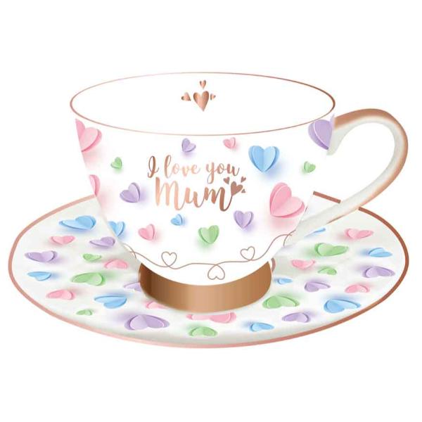 Only 2 left!2 Pack Sweet Heart Mum Tea Cup With Saucer
