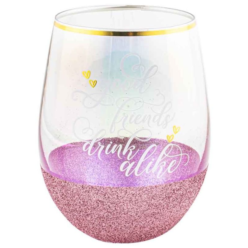 Only 1 left!Good Friends Drink Alike Pink Glitterati Stemless Glass - 600ml