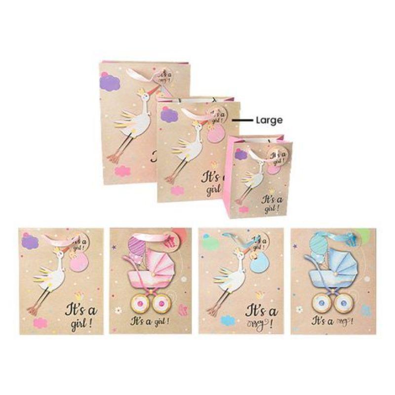 Only 1 left!Stork Pram Baby Large Gift Bag - 26cm x 32cm x 12cm