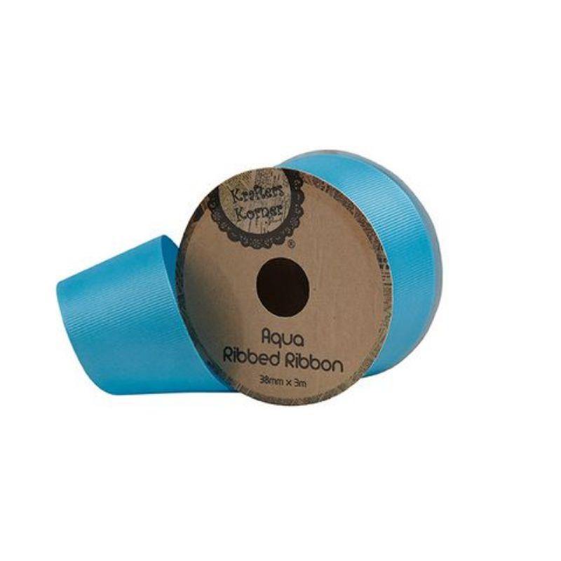 19 in stockRibbed Aqua Ribbon - 38mm x 3m
