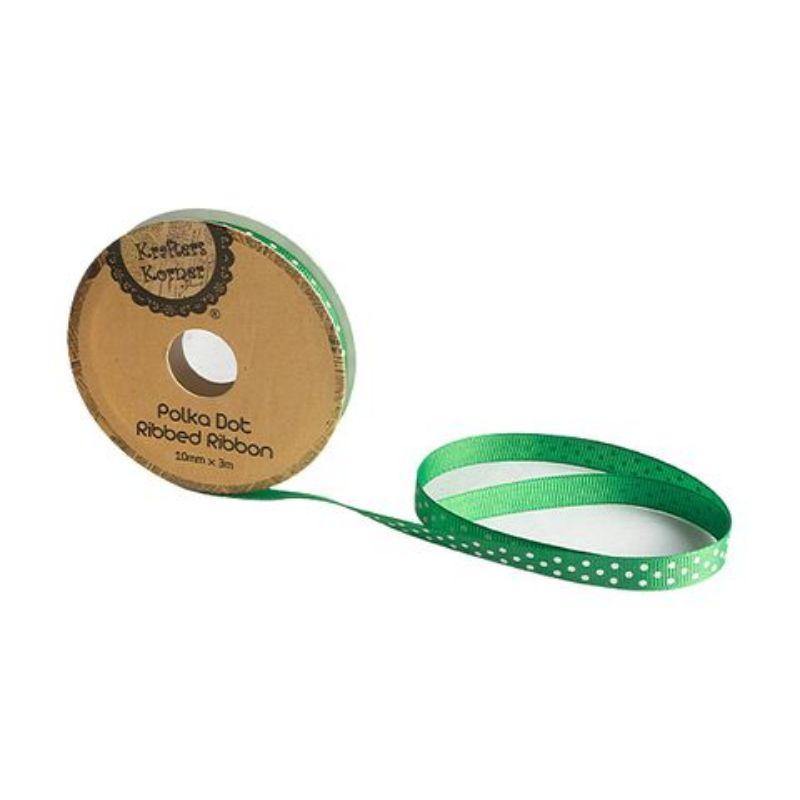 Only 2 left!Green White Dot Ribbon - 25mm x 3m