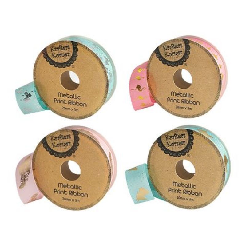 22 in stockMetallic Gold Printed Design Ribbon - 20mm x 3m