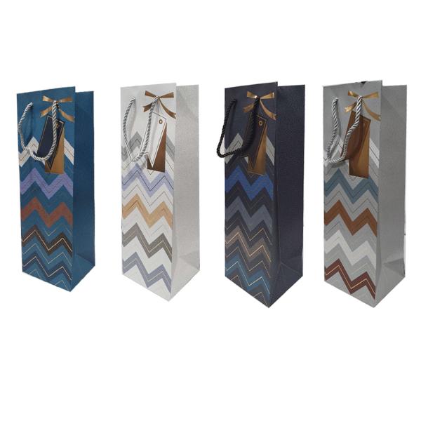 Only 4 left!Vertical Wave Foiled Bottle Gift Bag - 36cm x 12.3cm x 8.5cm