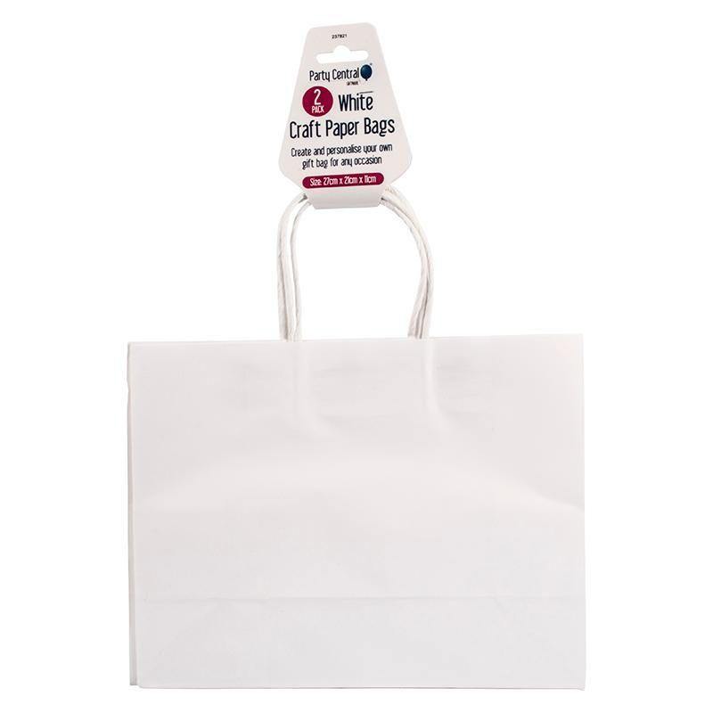 2 Pack White Horizontal Craft Paper Bags - 27cm x 21cm x 11cm
