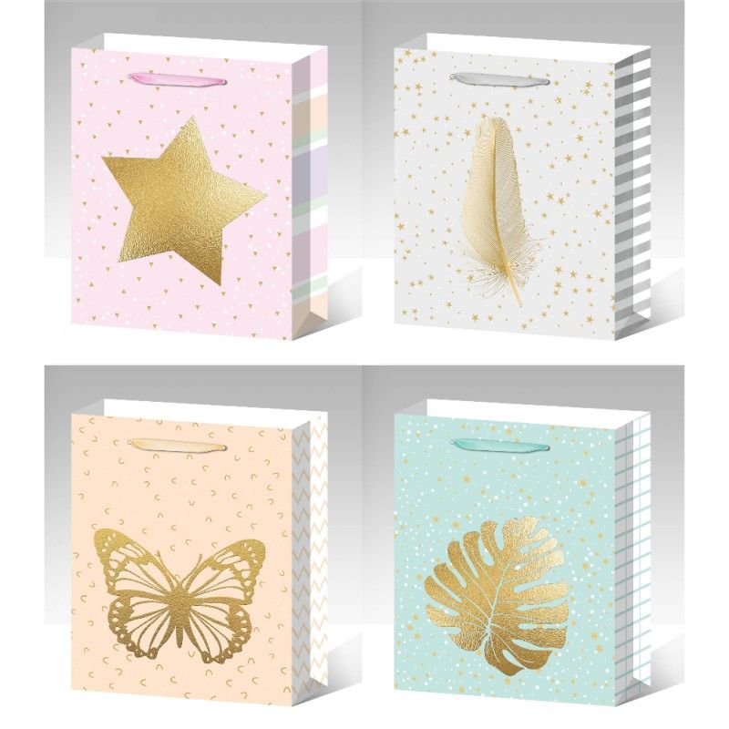10 in stockGold Foil Medium Gift Bag - 18cm x 24cm x 8.5cm