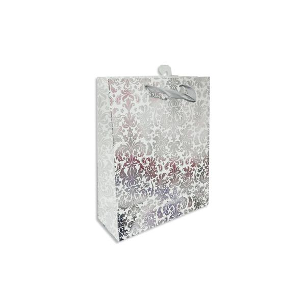 Only 1 left!Silver Pattern Gift Bag - 11.1cm x 13.7cm x 6.2cm