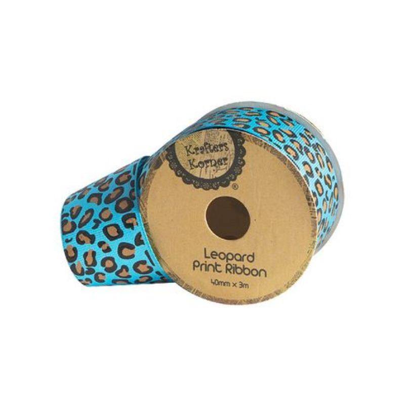 10 in stockBlue Leopard Ribbon - 40mm x 3m