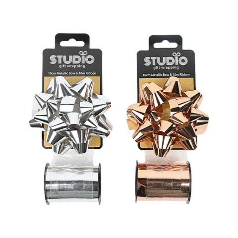 18 in stockSilver/Rose Bow & Ribbon Set - 10cm x 10m