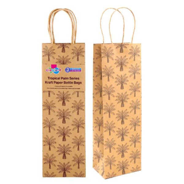 Only 2 left!3 Pack Tropical Palm Kraft Paper Bottle Bags - 35cm x 11.5cm 8cm