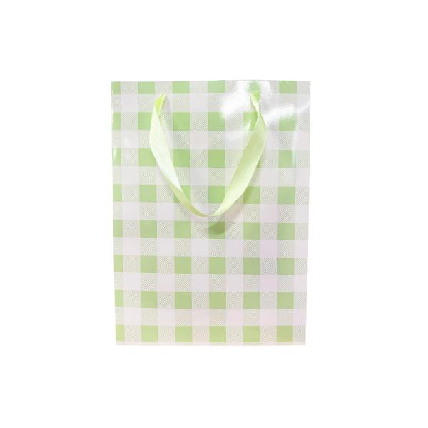 Green Gingham Paper Bag - 25cm x 10cm x 33cm- Regular price