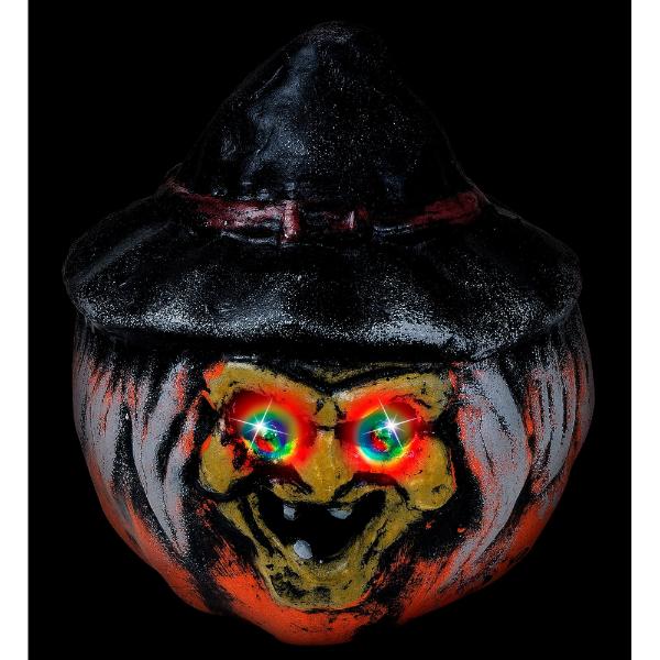 12 in stockWitch Pumpkin With Hat & Color Changing Led Light Eyes - 19cm x 22cm