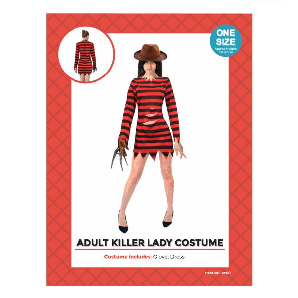 Only 2 left!Adult Red Black Stripe Killer Lady Costume