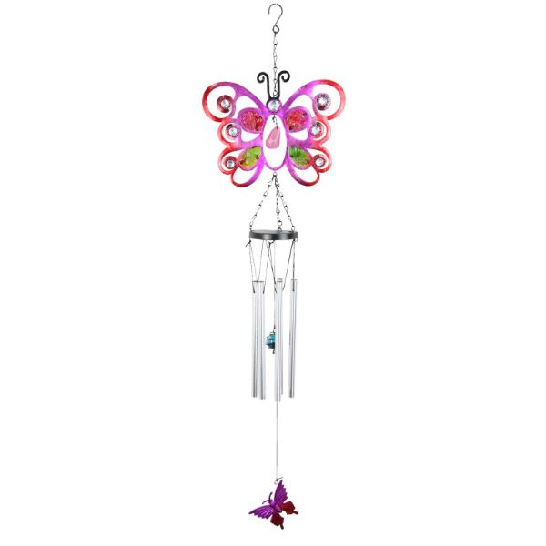 Only 4 left!Silver Butterfly Crystal Wind Chime - 78cm