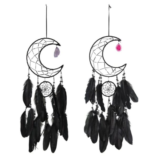 6 in stockBlack Half Moon Dream Catcher with Agate Slice - 20cm