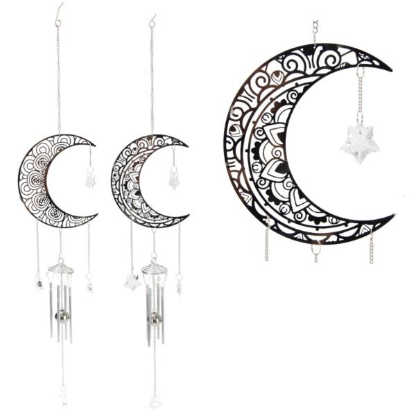 Only 2 left!Silver Moon With Crystal Wind Chime - 85cm