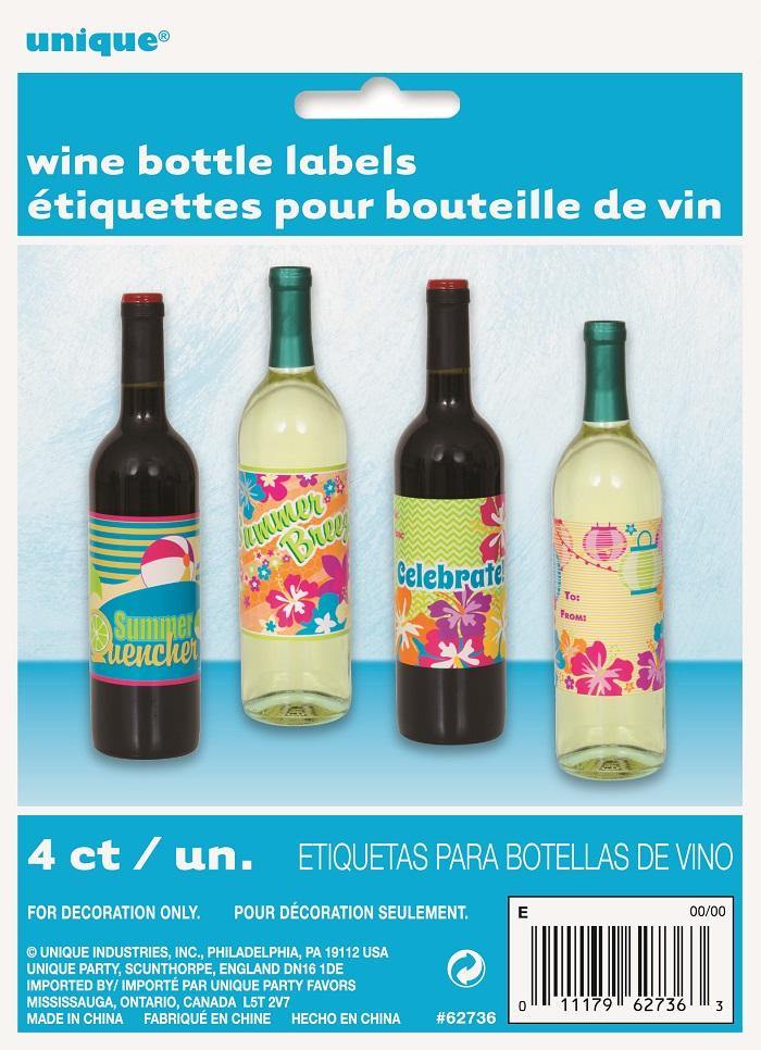 Only 3 left!4 Pack Luau Summer Fun Wine Bottle Labels