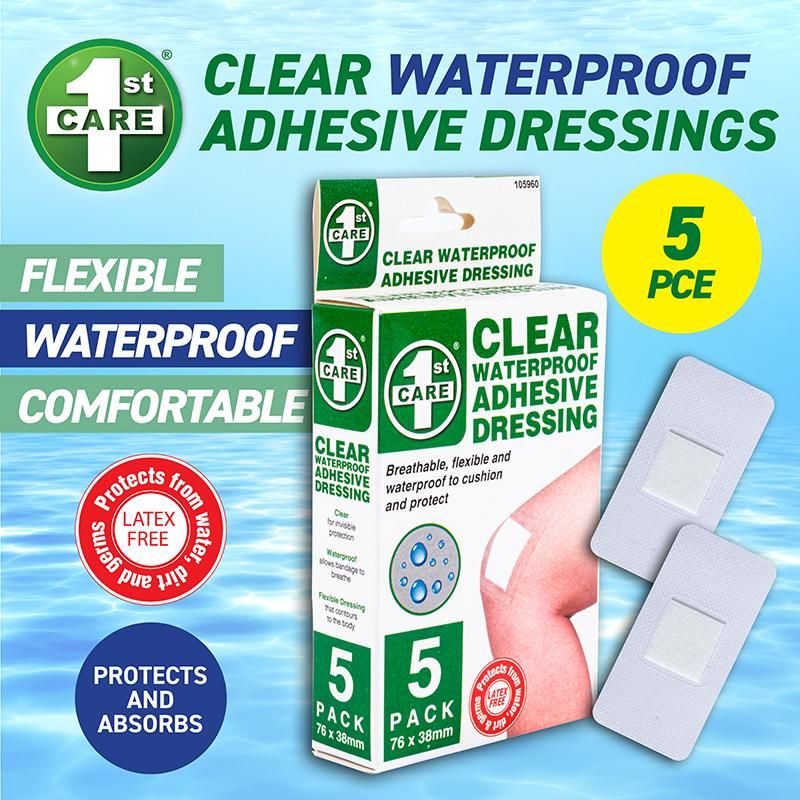 5 Pack Clear Waterproof Adhesive Dressings - 76mm x 38mm