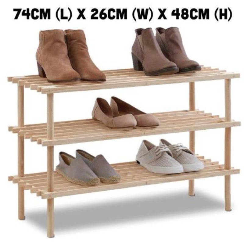 Only 5 left!3 Tier Natural Colour Shoe Rack - 74cm x 26cm x 48cm