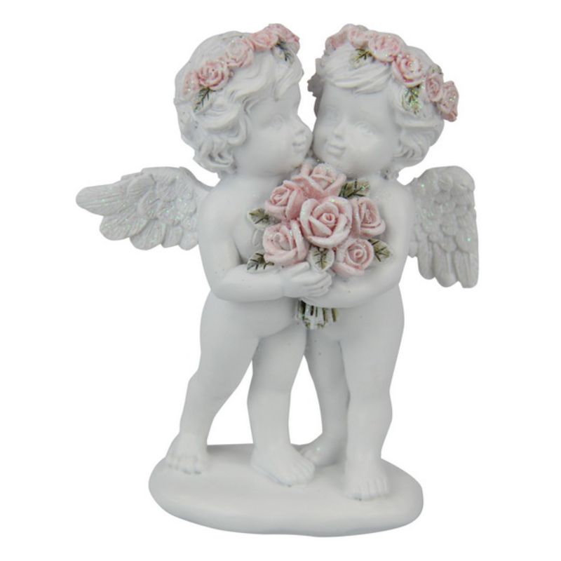 Only 1 left!Standing Cherub Couple with Rose Band - 10cm