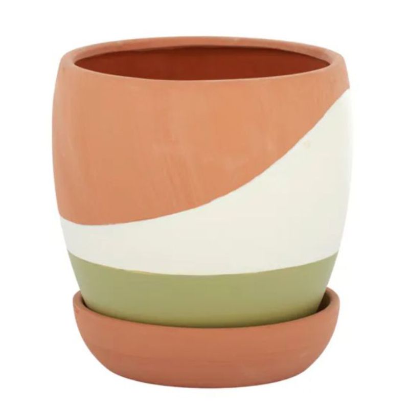 Only 5 left!Green Spliced Ceramic Pot & Saucer - 14cm x 15cm