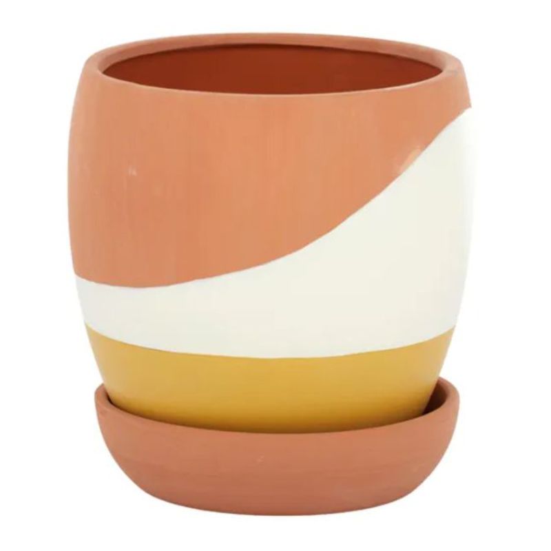 Only 5 left!Blue Spliced Ceramic Pot & Saucer - 14cm x 15cm