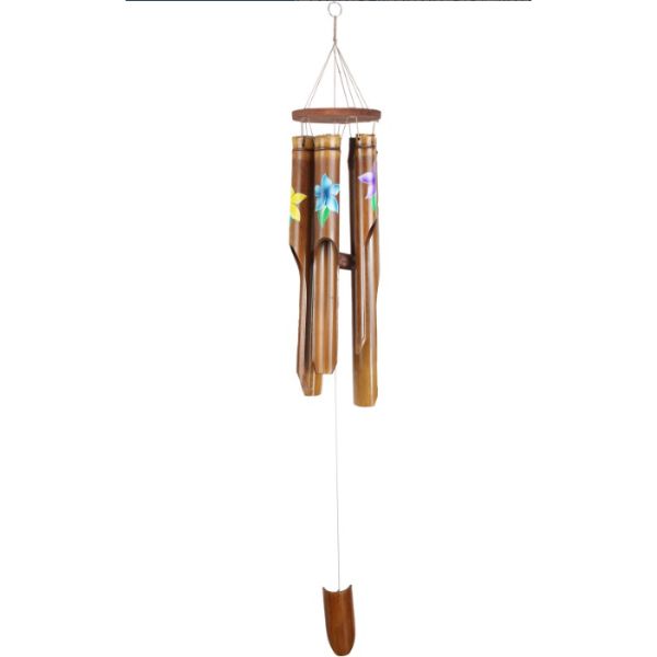 Only 3 left!Natural Bamboo 5 Tube Wind Chime With Floral Decal