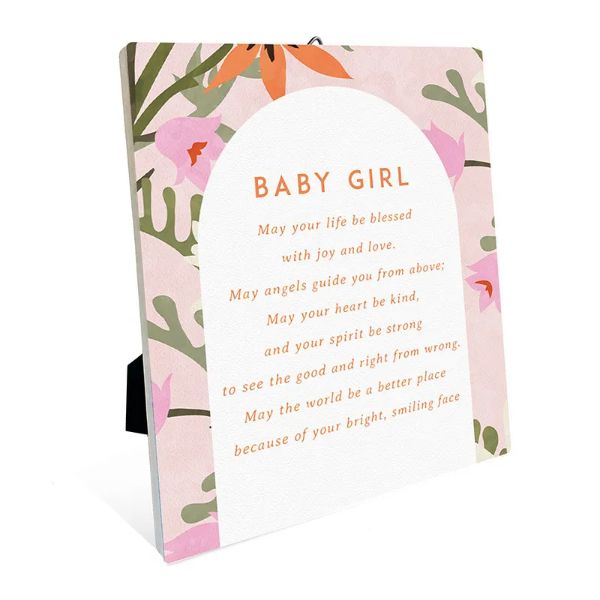 Only 2 left!Flower Market Ceramic Baby Girl Sentiment Plaque - 12cm x 14cm
