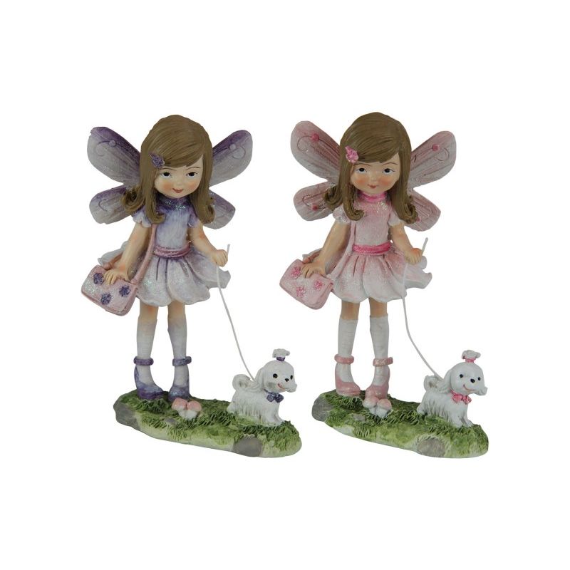 Only 1 left!Fairy with Handbag Walking Dog - 13cm