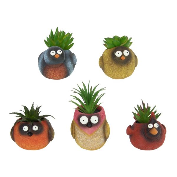 Only 3 left!9cm Comical Bird with Succulent 5 Asstd