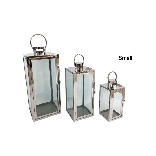 Polish Silver Metal Small Glass Lantern - 10cm x 24.5cm