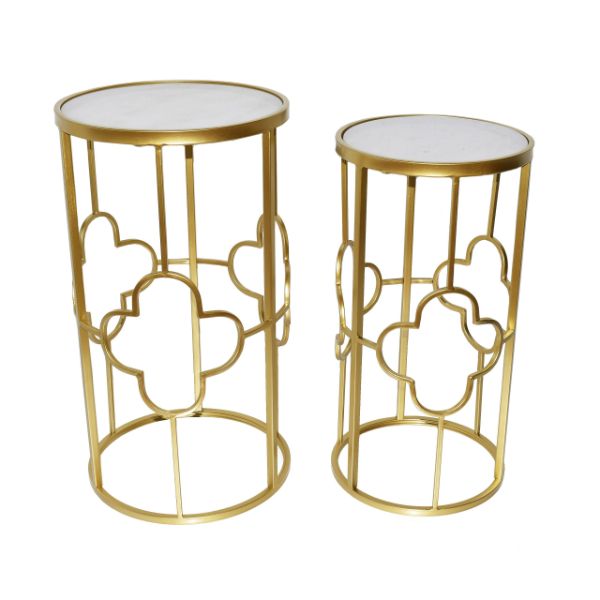 Only 1 left!2/S Metal Side Table with 2cm thickness Marble top D35*63.5/D30*58.5cm