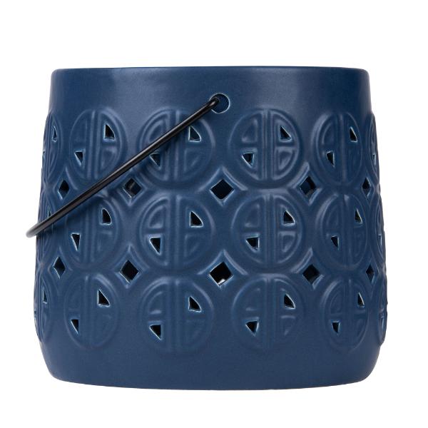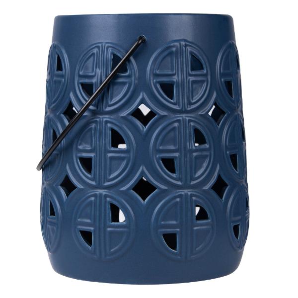 Only 2 left!Navy Ceramic & Cement Mahal Cer Lantern - 15cm x 13cm