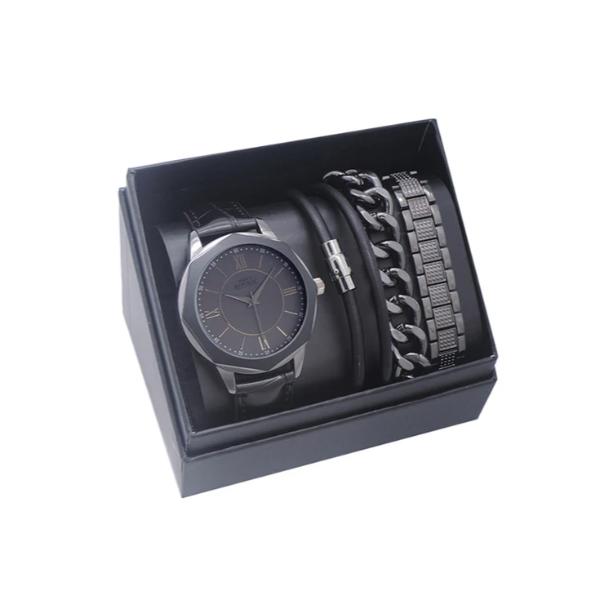 Only 2 left!Gun Metal Mens Republic Watch Set With 3 Bracelets