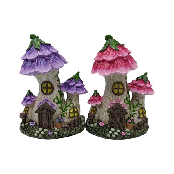 Only 3 left!Pink & Purple Flower Fairy Garden House - 19cm